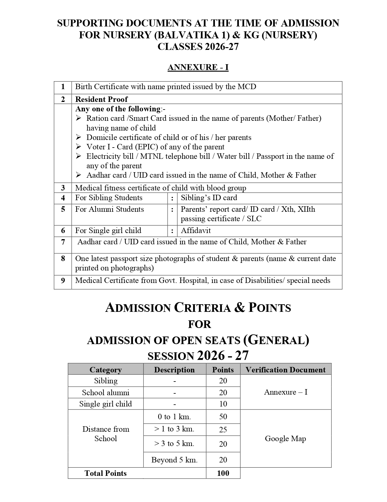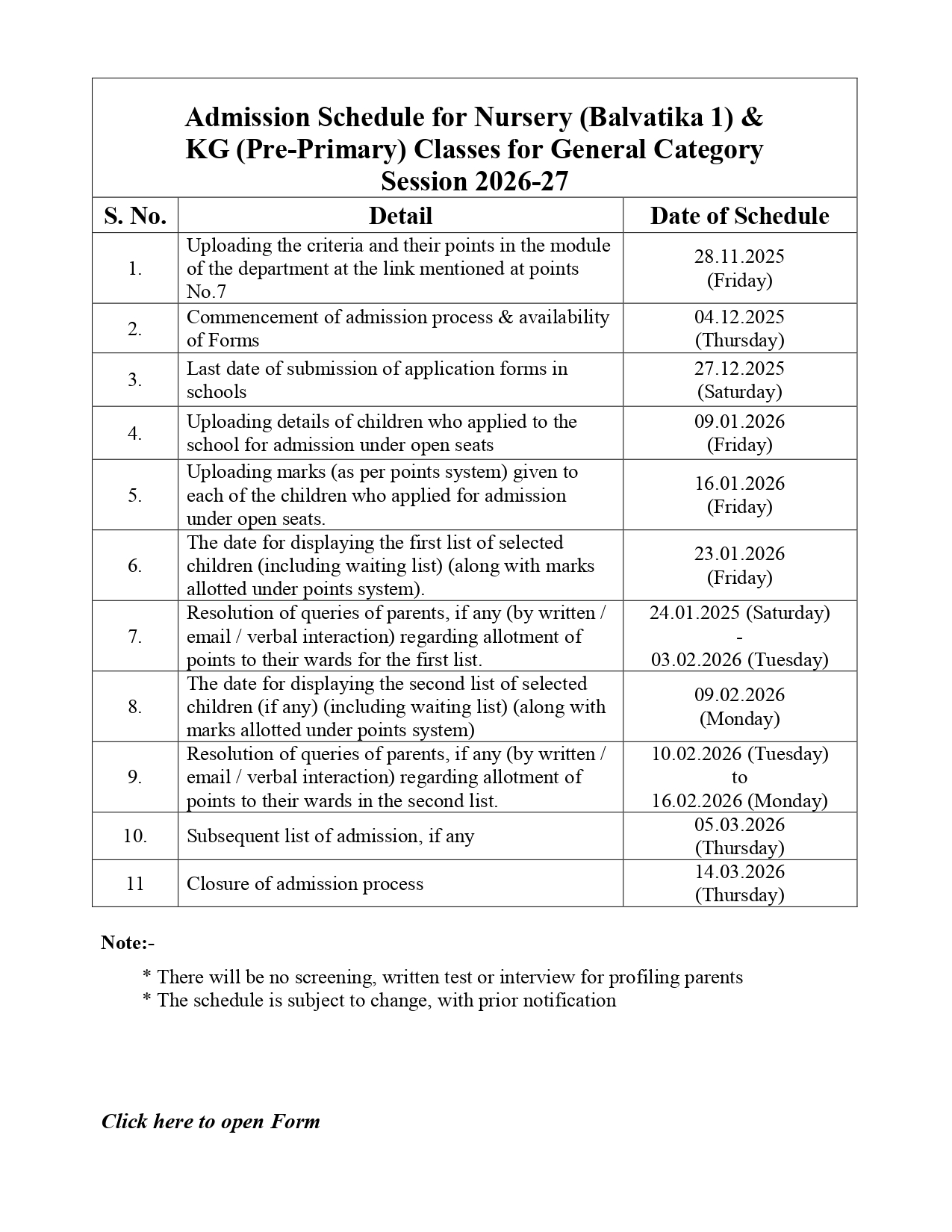 Instructions & Online Form For Nursery / KG (2026-27)